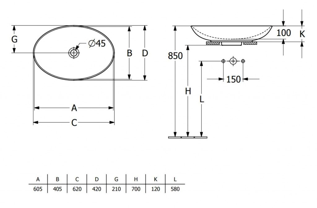 Umývadlo na postavenie na dosku alebo kúpeľňovú skrinku