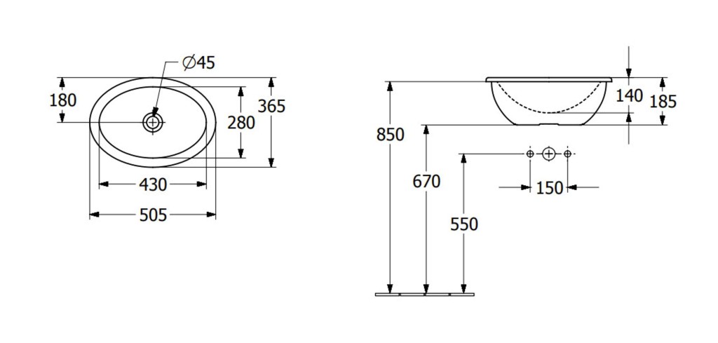 Oválne zápustné umývadlo