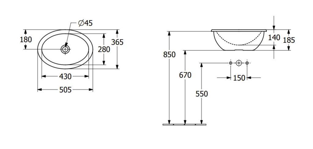 Oválne zápustné umývadlo