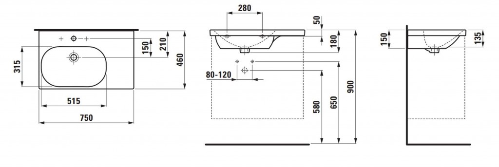 Nábytkové umývadlo s odkladacou plochou vpravo