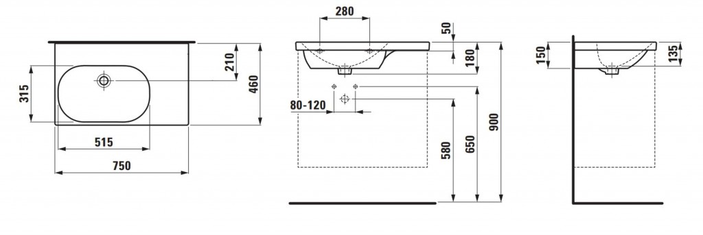 Nábytkové umývadlo s odkladacou plochou vpravo
