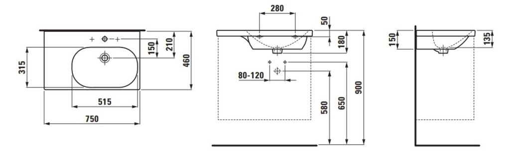 Nábytkové umývadlo s odkladacou plochou vľavo
