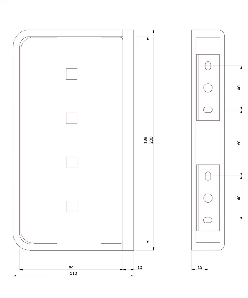 - šírka: 20 cm, výška: 3 cm, vzdialenosť od steny: 11 cm