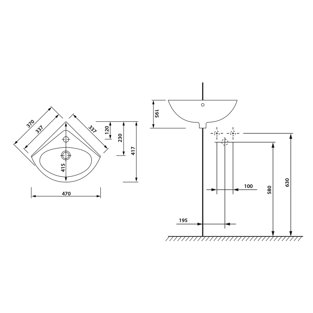 | Typ umývadla | Rohové umyvadlo |