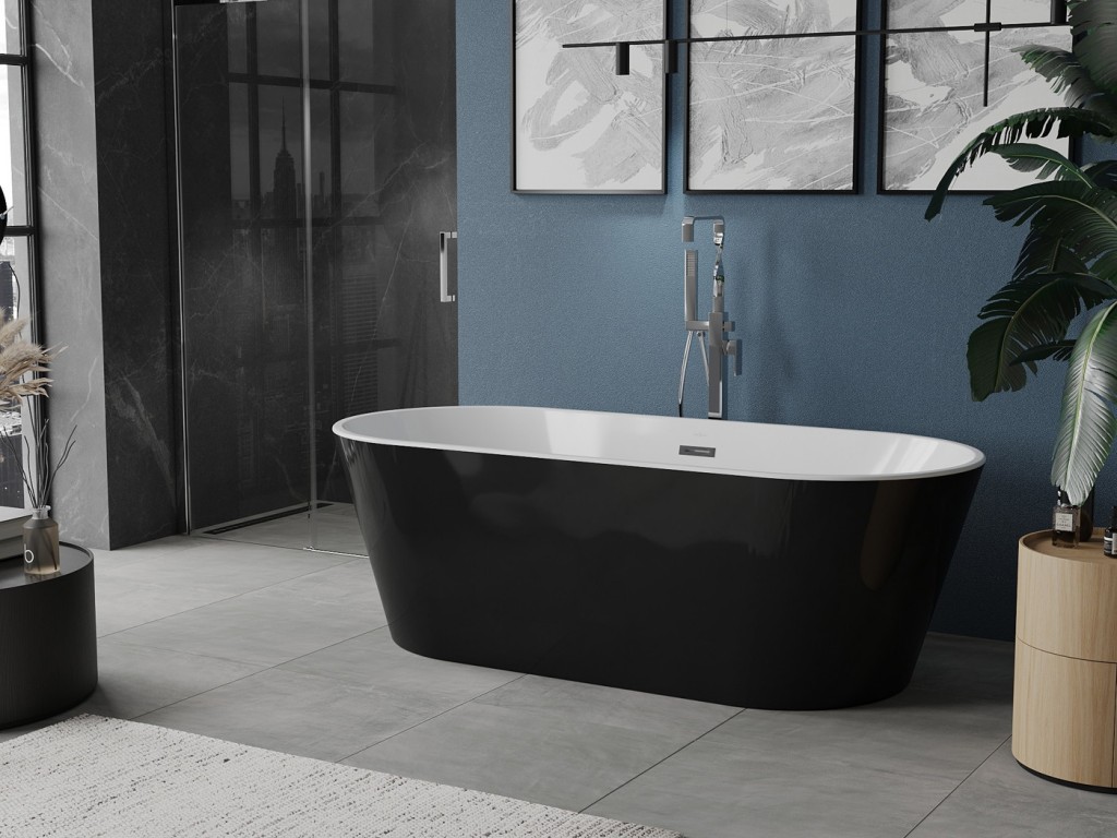 MEXEN - Luna vaňa voľne stojaca 180x80, biela/čierna, sifón chróm (52031808075)