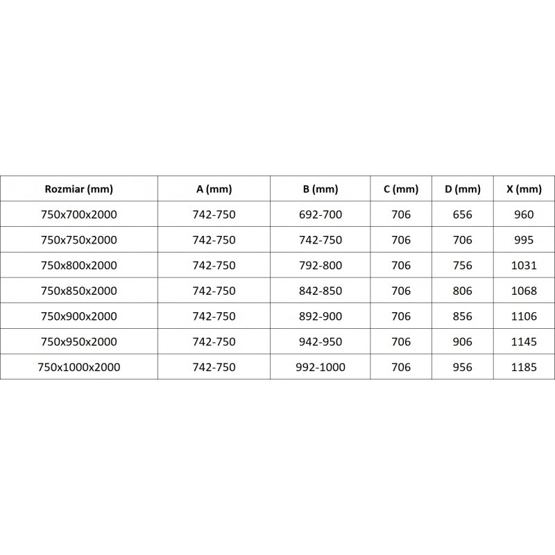 | Šírka otvoru | 995 |