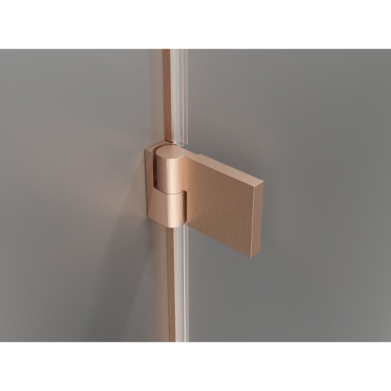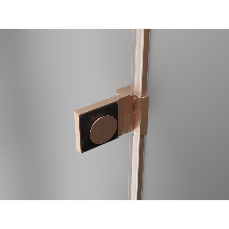 Špecifikácia produktu: Rozmer: 90x90 cm (ľavé dvere 90 cm, stena 90 cm) Výška: 200 cm Strana montáže: Ľavá Vchod: Dvere s otočnými pántami Farba skla: Priehľadná Povrchová úprava: Kartáčovaná meď Profil: Hliník Stabilizátor v tvare L: Nerezová oceľ Typ skla stena 8 mm Obliečka na jednoduché čistenie Možnosť nastavenia šírky Dva montážne systémy: - s profilom, ktorý umožňuje vyrovnanie nerovností steny - bez profilu v prípade dokonale rovných stien Možnosť montáže na sprchovú vaničku alebo obklady Mechanizmus na zdvíhanie a spúšťanie dverí Mosadzné svorky v jednej rovine so sklenenou tabuľou Magnetický prúžok Magnetický prúžok dverí