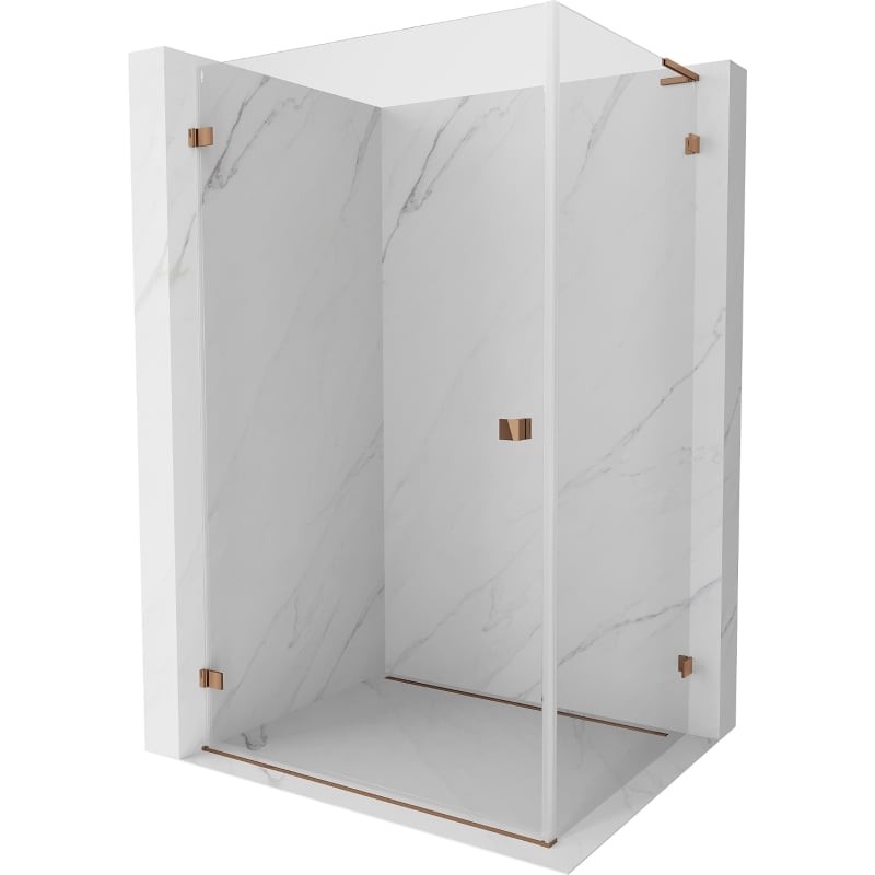 Špecifikácia produktu: Rozmer: 95x90 cm (ľavé dvere 95 cm, stena 90 cm) Výška: 200 cm Strana montáže: Ľavá Vchod: Dvere s otočnými pántami Farba skla: Priehľadná Povrchová úprava: Ružové zlato Profil: Hliník Stabilizátor v tvare L: Nerezová oceľ Typ skla: 8 mm Obliečka na jednoduché čistenie Možnosť nastavenia šírky Dva montážne systémy: - s profilom, ktorý umožňuje vyrovnanie nerovností steny - bez profilu v prípade dokonale rovných stien Možnosť montáže na sprchovú vaničku alebo obklady Mechanizmus na zdvíhanie a spúšťanie dverí Mosadzné svorky v jednej rovine so sklenenou tabuľou dverí Magnetický prúžok dverí