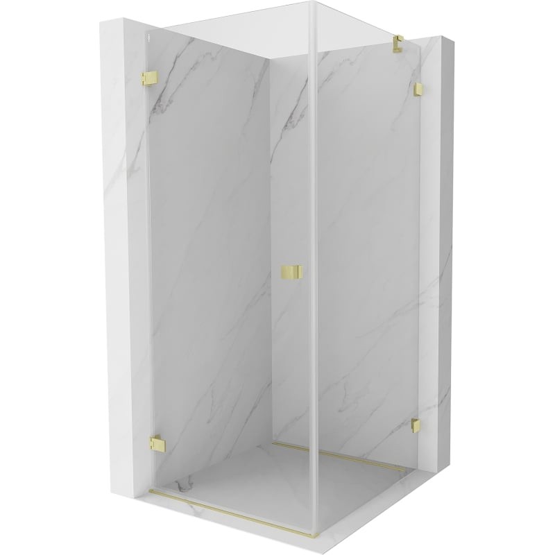 Špecifikácia produktu: Rozmer: 90x90 cm (ľavé dvere 90 cm, stena 90 cm) Výška: 200 cm Strana montáže: Ľavá Vchod: Dvere s otočnými pántami Farba skla: Priehľadná Povrchová úprava: Kartáčované zlato Profil: Hliník Typ skla: Tvrdené Hrúbka skla: dve Nastaviteľná šírka Dva montážne systémy: - s profilom, ktorý umožňuje vyrovnanie nerovností stien - bez profilu pre dokonale rovné steny Možnosť montáže na sprchovú vaničku alebo obklady Mechanizmus na zdvíhanie a spúšťanie dverí Mosadzné svorky v jednej rovine so sklenenou tabuľou Magnetický prúžok a elastomérové tesnenie pre odtok vody