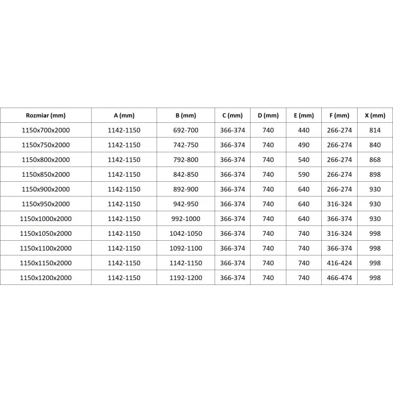 | Šírka otvoru | 998 |