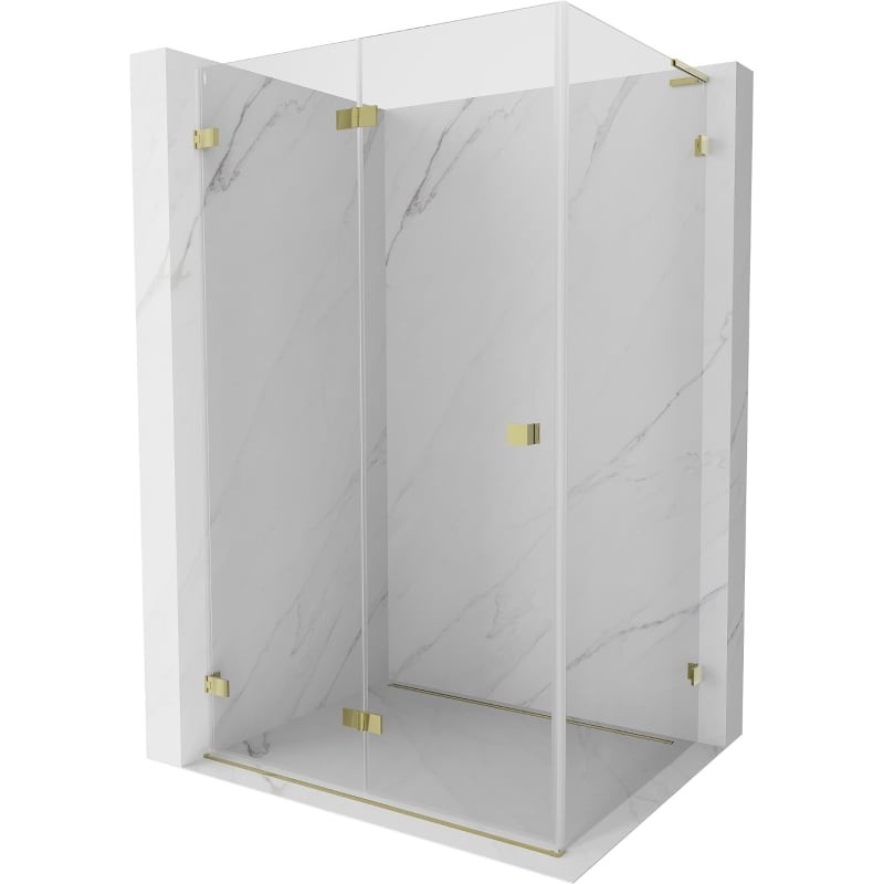 Špecifikácia produktu: Rozmer: 95x90 cm (ľavé dvere 95 cm, stena 90 cm) Výška: 200 cm Strana montáže: Ľavá Vchod: Skladacie dvere Farba skla: Priehľadná Povrchová úprava: Zlatá Profil: Hliník Uhlový stabilizátor L: Nerezová oceľ Typ skla: Tvrdené Tl Obliečka na jednoduché čistenie Možnosť nastavenia šírky Dva montážne systémy: - s profilom, ktorý umožňuje vyrovnanie nerovností stien - bez profilu v prípade dokonale rovných stien Možnosť montáže na sprchovú vaničku alebo obklady Mosadzné svorky a pánty v jednej rovine so sklenenou tabuľou Magnetický prúžok a elastomérové tesnenie pre odvod vody Hliníkový práh