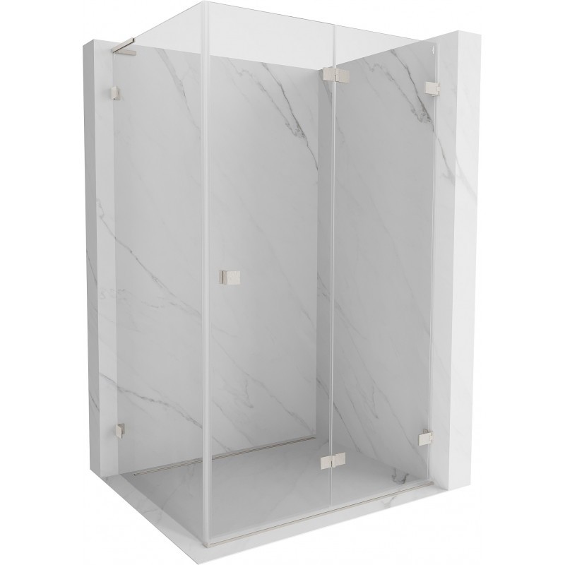 Špecifikácia produktu: Rozmer: 100x90 cm (pravé dvere 100 cm, stena 90 cm) Výška: 200 cm Strana montáže: Pravá Vchod: Skladacie dvere Farba skla: Priehľadná Povrchová úprava: Kartáčovaný nikel Profil: Hliník Uhlový stabilizátor L: Nerezová oceľ Typ skla: 8 mm Povlak na jednoduché čistenie Možnosť nastavenia šírky Dva montážne systémy: - s profilom, ktorý umožňuje vyrovnanie nerovností stien - bez profilu v prípade dokonale rovných stien Možnosť montáže na sprchovú vaničku alebo obklady Mosadzné svorky a pánty v jednej rovine so sklenenou tabuľou Magnetický prúžok a elastomérové tesnenie na odvod vody Hliní