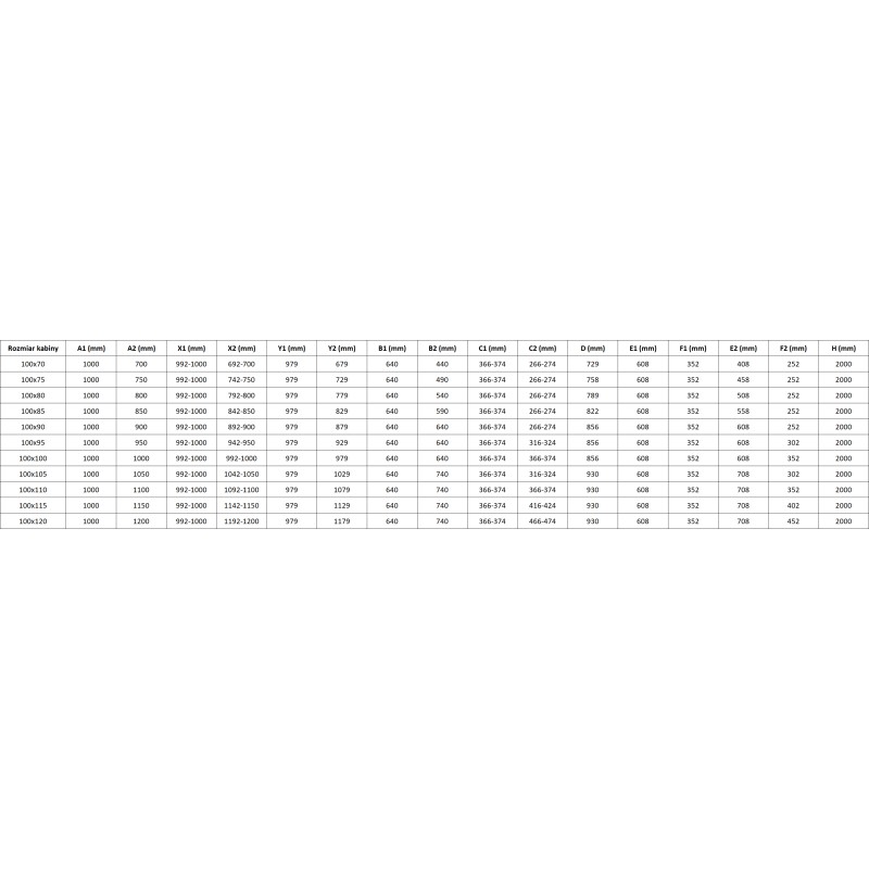 Špecifikácia produktu: Rozmer: 100x90 cm (ľavé dvere 100 cm, pravé dvere 90 cm) Výška: 200 cm Strana montáže: Ľavá Vchod: Dvere s výklopnými krídlami Farba skla: Priehľadná Povrchová úprava: Biela Profil: Hliník Uhlový stabilizátor L: Nerezová oceľ Povrchová úprava pre jednoduché čistenie Možnosť nastavenia šírky Dva montážne systémy: - s profilom, ktorý umožňuje vyrovnanie nerovností stien - bez profilu pre dokonale rovné steny Možnosť montáže na sprchovú vaničku alebo obklady Mechanizmus na zdvíhanie a spúšťanie dverí Mosadzné svorky a pánty v jednej rovine so sklenenou tabuľou Magnetický prúžok a el