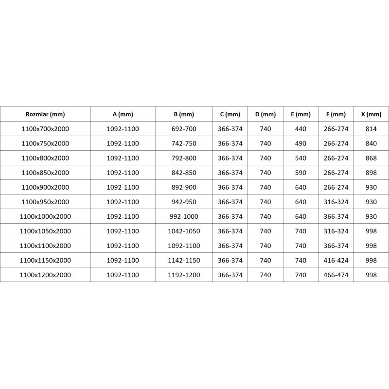 Špecifikácia produktu: Rozmer: 110x85 cm (ľavé dvere 110 cm, pravé dvere 85 cm) Výška: 200 cm Strana montáže: Ľavá Vchod: Dvere s otočnými pántami Farba skla: Priehľadná Povrchová úprava: Kartáčovaný nikel Profil: Hliník Stabilizátor v tvare L: Nerez mm Povrchová úprava pre jednoduché čistenie Možnosť nastavenia šírky Dva montážne systémy: - S profilom, ktorý umožňuje vyrovnanie nerovností stien - Bez profilu pre dokonale rovné steny Možnosť montáže na sprchovú vaničku alebo dlaždice Mechanizmus na zdvíhanie a spúšťanie dverí Mosadzné svorky a pánty v jednej rovine so sklenenou tabuľou Magnetický tesnenie dverí