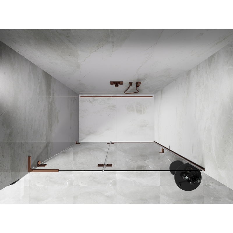 Specifikace produktu: Rozměr: 140x200 cm Strana montáže: Levá Vchod: Otevíravý Barva skla: Průhledná Povrchová úprava: Růžové zlato Profil: Hliník Stabilizátor ve tvaru L: Nerezová ocel Typ skla: Tvrzené Tloušťka skla: 8 mm Povrchová úprava pro snadné čištění Možnost nastavení šířky Dva montážní systémy: - S profilem, který umožňuje vyrovnání nerovností stěny - Bez profilu pro dokonale rovné stěny Možnost montáže na sprchovou vaničku nebo obklady Mechanismus pro zvedání a spouštění dveří Mosazné svorky a panty v jedné rovině se skleněnou tabulí Magnetický proužek a elastomerové těsnění pro odvod vody Hliníkový práh těsnění dveří