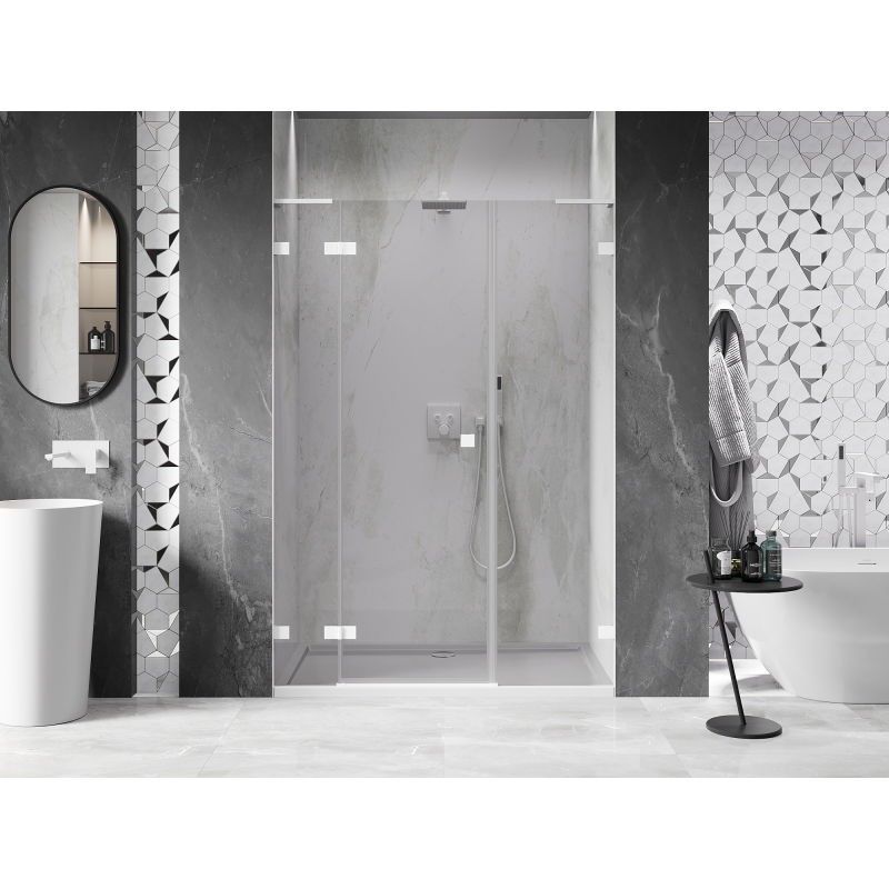 Špecifikácia produktu: Rozmer: 145x200 cm Strana montáže: Ľavá Vchod: Otváravý Farba skla: Priehľadná Povrchová úprava: Biela Profil: Hliník Stabilizátor v tvare L: Nerezová oceľ Typ skla: Tvrdené Hrúbka skla: 8 mm Povrchová úprava pre ľahké čistenie Možnosť nastavenia šírky - Bez profilu pre dokonale rovné steny Možnosť montáže na sprchovú vaničku alebo dlaždice Mechanizmus na zdvíhanie a spúšťanie dverí Mosadzné svorky a pánty v jednej rovine so sklenenou tabuľou Magnetický prúžok a elastomérové tesnenie na odvod vody Hliníkový prah tesnenia dverí