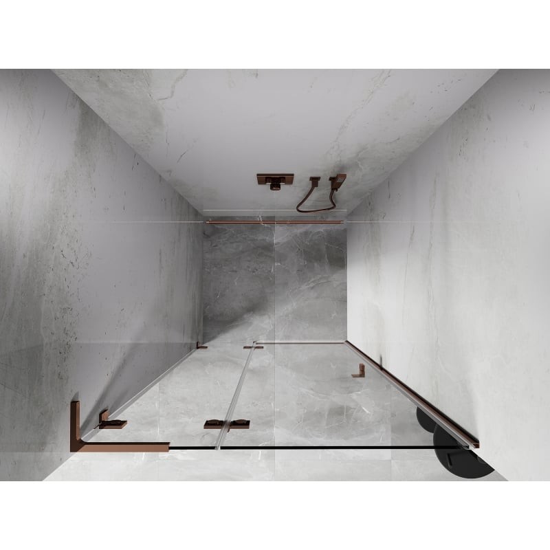 Specifikace produktu: Rozměr: 80x200 cm Strana montáže: Levá Vchod: Otevíravý Barva skla: Průhledná Povrchová úprava: Růžové zlato Profil: Hliník Stabilizátor ve tvaru L: Nerezová ocel Typ skla: Tvrzené Tloušťka skla: 8 mm Povrchová úprava pro snadné čištění Možnost nastavení šířky Dva montážní systémy: - S profilem, který umožňuje vyrovnání nerovností stěny - Bez profilu pro dokonale rovné stěny Možnost montáže na sprchovou vaničku nebo dlaždice Mechanismus pro zvedání a spouštění dveří Mosazné svorky a panty v jedné rovině se skleněnou tabulí Magnetický proužek a elastomerové těsnění pro odvod vody Hliníkový práh těsnění dveří