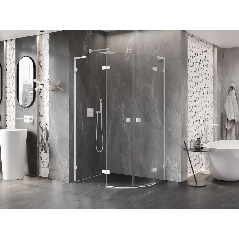 Specifikace produktu: Rozměr: 100x70 cm (levé dveře 100 cm, pravé dveře 70 cm) Výška: 200 cm Poloměr zakřivení R55 Strana montáže: Levá Vchod: Dveře s výklopnými křídly Barva skla: Průhledná Povrchová úprava: Bílá Profil: Hliník Stabilizátor ve tvaru L: Nerezová ocel Typ skla: Tvrzené Tloušťka skla: 8 mm Povrchová úprava pro snadné čištění Možnost nastavení šířky Dva montážní systémy: - S profilem, který umožňuje vyrovnání nerovností stěn - Bez profilu pro dokonale rovné stěny Možnost montáže na sprchovou vaničku nebo dlaždice Mechanismus pro zvedání a spouštění dveří Mosazné svorky a panty v jedné rovině se skleněnou tabulí Magnetický proužek a elastomerové těsnění pro odvod vody Hliníkový práh těsnění dveří