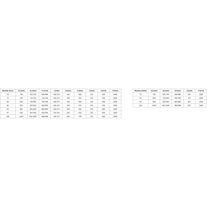 Špecifikácia produktu: Rozmer: 90x80 cm (pravé dvere 90 cm, stena 80 cm) Výška: 200 cm Strana montáže: Pravá Vchod: Dvere s otočnými pántami Farba skla: Priehľadná Povrchová úprava: Biela Profil: Hliník Stabilizátor v tvare L: Nerezová oceľ Typ skla: pre jednoduché čistenie Možnosť nastavenia šírky Dva montážne systémy: - s profilom, ktorý umožňuje vyrovnanie nerovností steny - bez profilu v prípade dokonale rovných stien Možnosť montáže na sprchovú vaničku alebo obklady Mechanizmus na zdvíhanie a spúšťanie dverí Mosadzné svorky a pánty v jednej rovine so sklenenou tabuľou Magnetický prúžok a prástomerové tesnenia