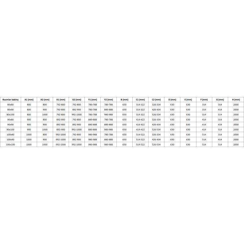 Špecifikácia produktu: Rozmer: 80x100 cm (pravé dvere 80 cm, stena 100 cm) Výška: 200 cm Strana montáže: Pravá Vchod: Dvere s otočnými pántami Farba skla: Priehľadná Povrchová úprava: Biela Profil: Hliník Stabilizátor v tvare L: Nerezová oceľ Typ skla úprava pre ľahké čistenie Možnosť nastavenia šírky Dva montážne systémy: - S profilom, ktorý umožňuje vyrovnanie nerovností steny - Bez profilu v prípade dokonale rovných stien Možnosť montáže na sprchovú vaničku alebo obklady Mechanizmus na zdvíhanie a spúšťanie dverí Mosadzné svorky a pánty v jednej rovine so sklenenou tabuľou Magnetický prúžok a dverí