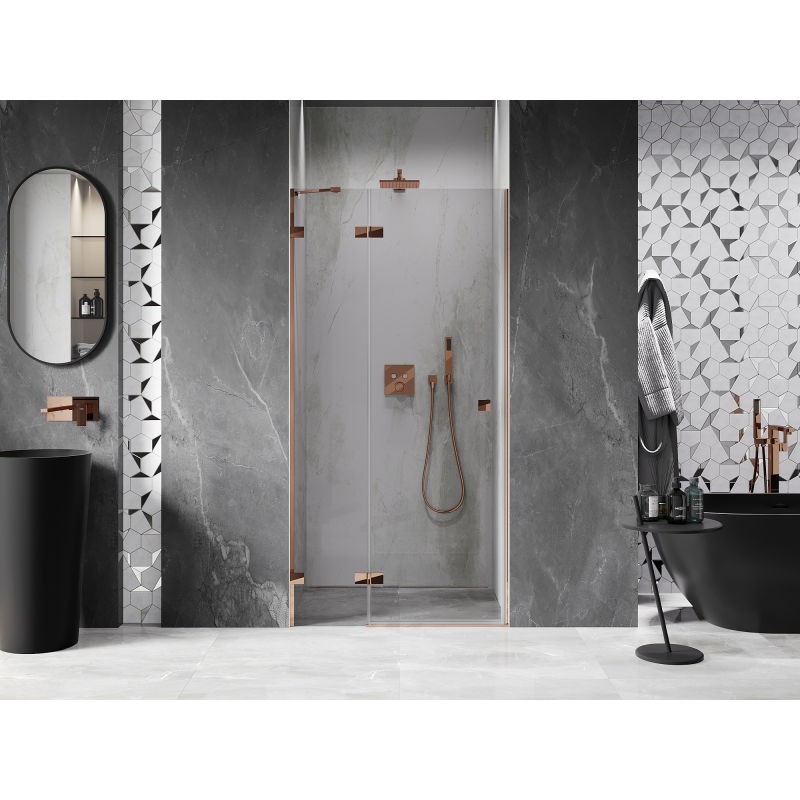 Specifikace produktu: Rozměr: 75x200 cm Strana montáže: Levá Vchod: Otevíravý Barva skla: Průhledná Povrchová úprava: Růžové zlato Profil: Hliník Konzola: Nerezová ocel Typ skla: Tvrzené Tloušťka skla: 8 mm Povrchová úprava pro snadné čištění Nastavitelná šířka Dva montážní systémy: - S profilem, který umožňuje vyrovnání nerovností stěn - Bez profilu pro dokonale rovné stěny Možnost montáže na sprchovou vaničku nebo obklady Mechanismus pro zvedání a spouštění dveří Mosazné svorky a panty v jedné rovině se skleněnou tabulí Magnetický proužek a elastomerové těsnění pro odvod vody Hliníkový práh těsnění dveří