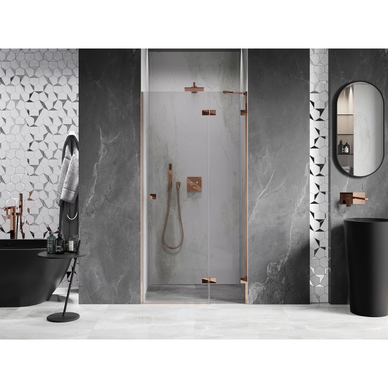 Specifikace produktu: Rozměr: 125x200 cm Strana montáže: Pravá Vchod: Otevíravý Barva skla: Průhledná Povrchová úprava: Růžové zlato Profil: Hliník Nosník: Nerezová ocel Typ skla: Tvrzené Tloušťka skla: 8 mm Povrchová úprava pro snadné čištění Možnost nastavení šířky Dva montážní systémy: - S profilem, který umožňuje vyrovnání nerovností stěny - Bez profilu pro dokonale rovné stěny Možnost montáže na sprchovou vaničku nebo dlaždice Mechanismus pro zvedání a spouštění dveří Mosazné svorky a panty v jedné rovině se skleněnou tabulí Magnetický proužek a elastomerové těsnění pro odvod vody Hliníkový práh těsnění dveří