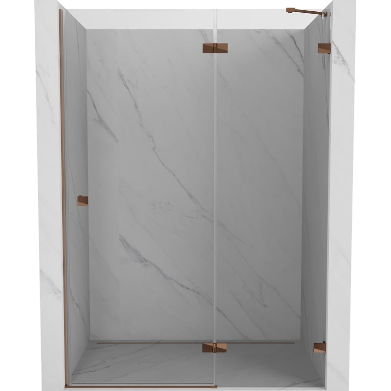 Specifikace produktu: Rozměr: 130x200 cm Strana montáže: Pravá Vchod: Otevíravý Barva skla: Průhledná Povrchová úprava: Růžové zlato Profil: Hliník Nosník: Nerezová ocel Typ skla: Tvrzené Tloušťka skla: 8 mm Povrchová úprava pro snadné čištění Nastavitelná šířka Dva montážní systémy: - S profilem, který umožňuje vyrovnání nerovností stěn - Bez profilu pro dokonale rovné stěny Možnost montáže na sprchovou vaničku nebo obklady Mechanismus pro zvedání a spouštění dveří Mosazné svorky a panty v jedné rovině se sklem Magnetický proužek a elastomerové těsnění pro odtok vody Hliníkový práh těsnění dveří