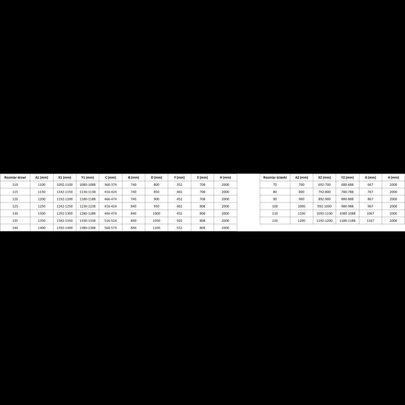 Rozmer: 115x70 cm (ľavé dvere 115 cm, stena 70 cm)