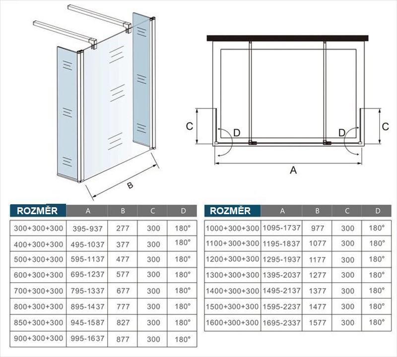 Rozmer: 30 × 200 cm + 2x otočný diel v rozmere 30 cm