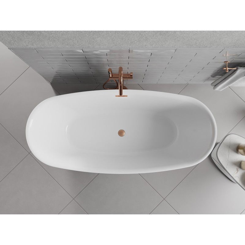 Špecifikácia produktu: Rozmery: 170 x 75 cm Výška: 58 cm Hĺbka: 45 cm Inštalácia: Voľne stojaci Materiál: Sanitárny akrylát Farba: Biela / Čierna Povrchová úprava: Kartáčovaná meď Otvor pre prepad: Áno Otvor pre batériu: Nie Sifón a zátka click-clack sú súčasťou