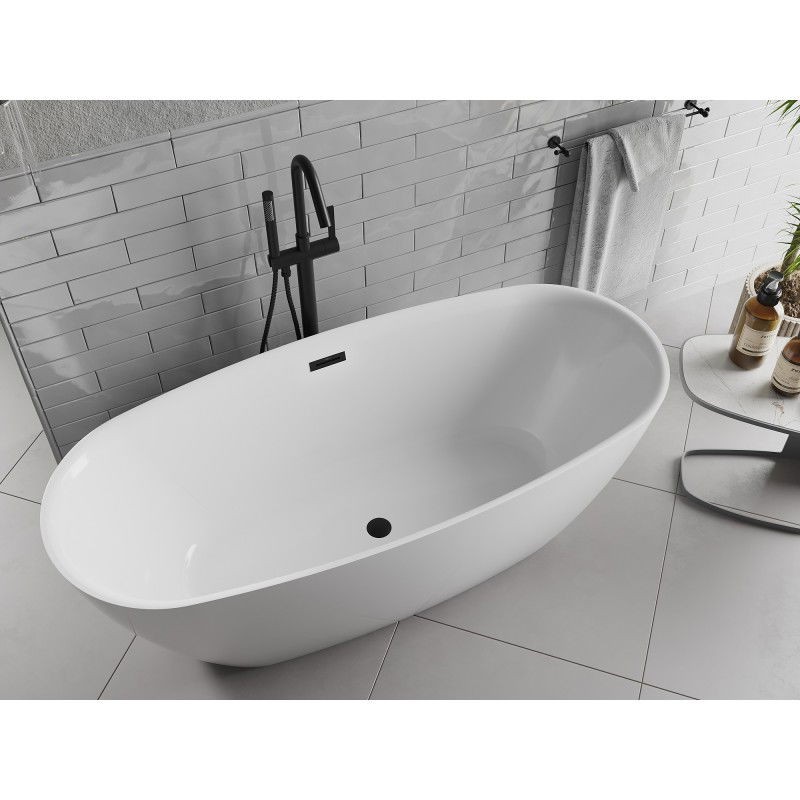 Špecifikácia produktu: Rozmery: 170 x 75 cm Výška: 58 cm Hĺbka: 45 cm Inštalácia: Voľne stojaci Materiál: Sanitárny akrylát Farba: Biela Povrchová úprava: Čierna Otvor pre prepad: Áno Otvor pre batériu: Nie Sifón a zátka click-clack sú súčasťou dodávky Odolné voči
