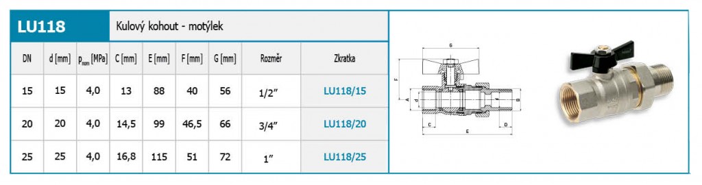 Luxusný plnoprietočný kohút s motýlikom a šróbením ŠM 3/4"