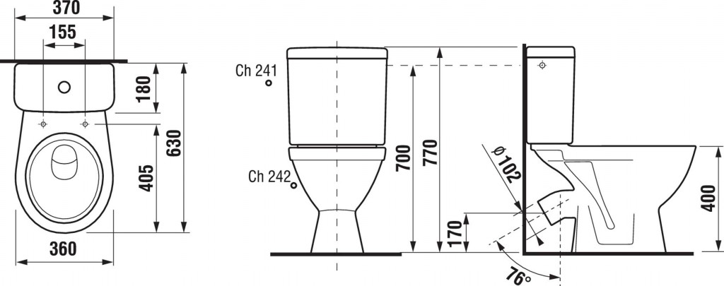 kombinačný klozet, hlboké splachovanie, šikmý odpad