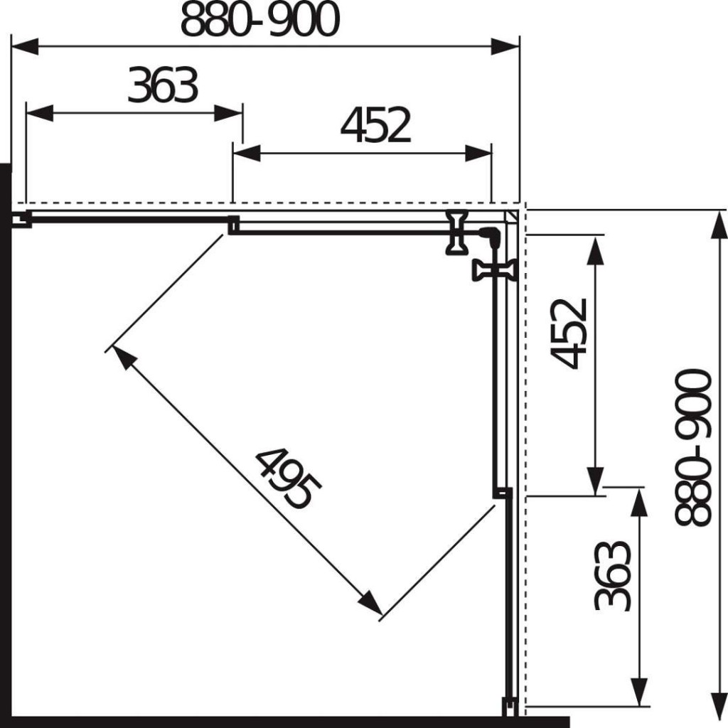 - rozmery: 880-900 x 880-900 mm, výška: 1900 mm