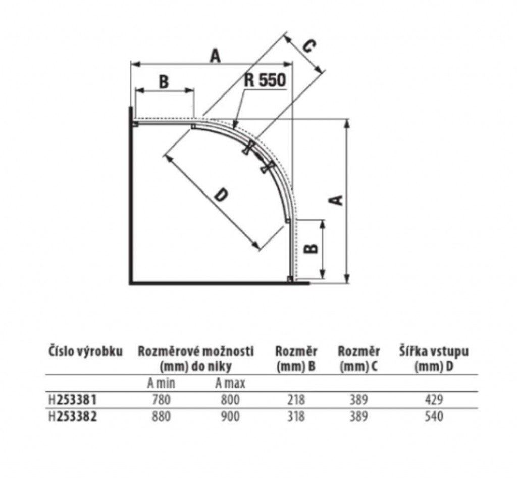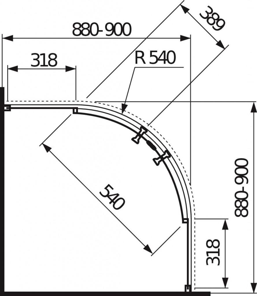 Štvrťkruhový sprchovací kút