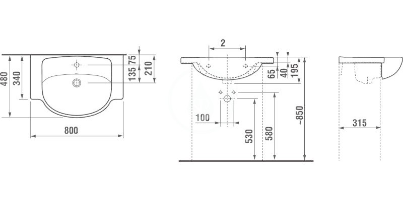 Umyvadlo nábytkové 80 cm s otvorem pro baterii