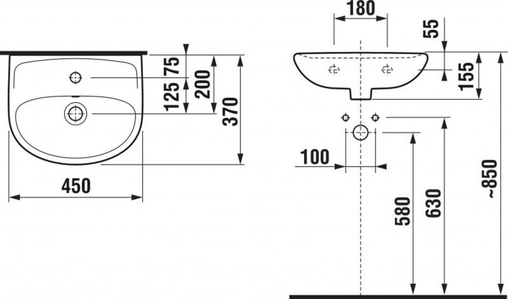 Umývadlo závesné s otvorom pre batériu