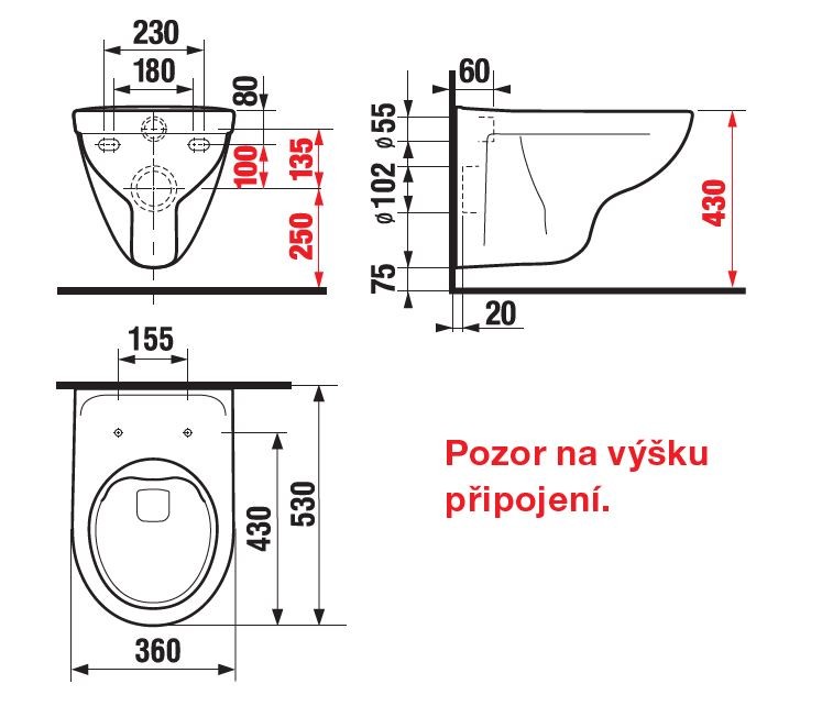 Lyra plus, závesné WC, 530x360 mm, Rimless, biela
