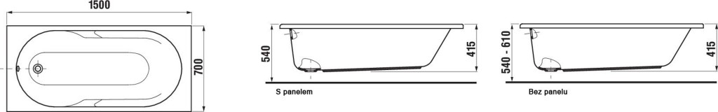 | Poznámka | Vana bez doplňků (madla, panel ,podhlavníky apod.) |