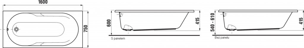 - dĺžka 1600 mm, šírka 750 mm, výška 415 mm
