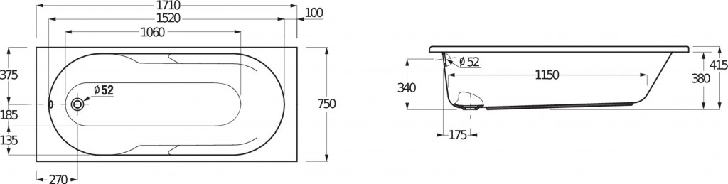 Nohy k vani sú súčasťou dodávky, odtokovú súpravu je nutné objednať.