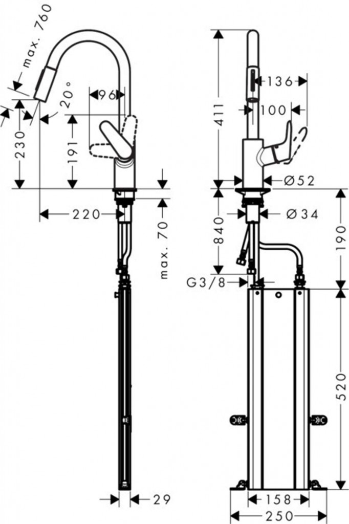 - hadice sa vyťahuje až 76 cm a zaručuje príjemnú prácu a voľnosť pohybu v okolí drezu