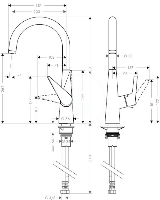 - přívodní hadice G 3⁄8