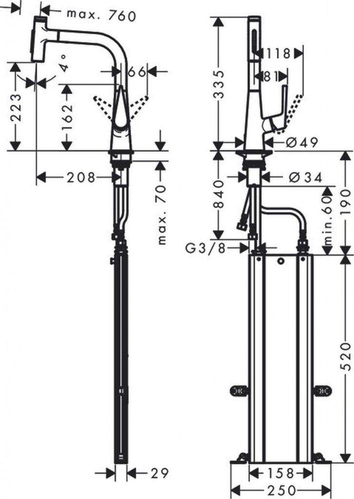 - hadice sa vyťahuje až 76 cm a zaručuje príjemnú prácu a voľnosť pohybu v okolí drezu