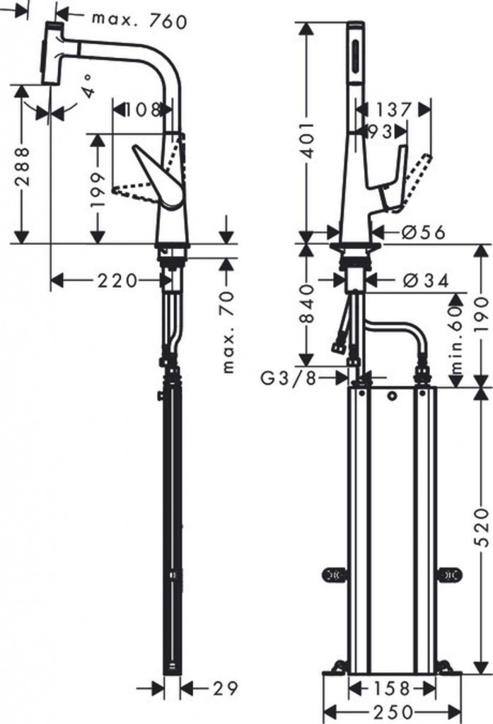 - hadice sa vyťahuje až 76 cm a zaručuje príjemnú prácu a voľnosť pohybu v okolí drezu