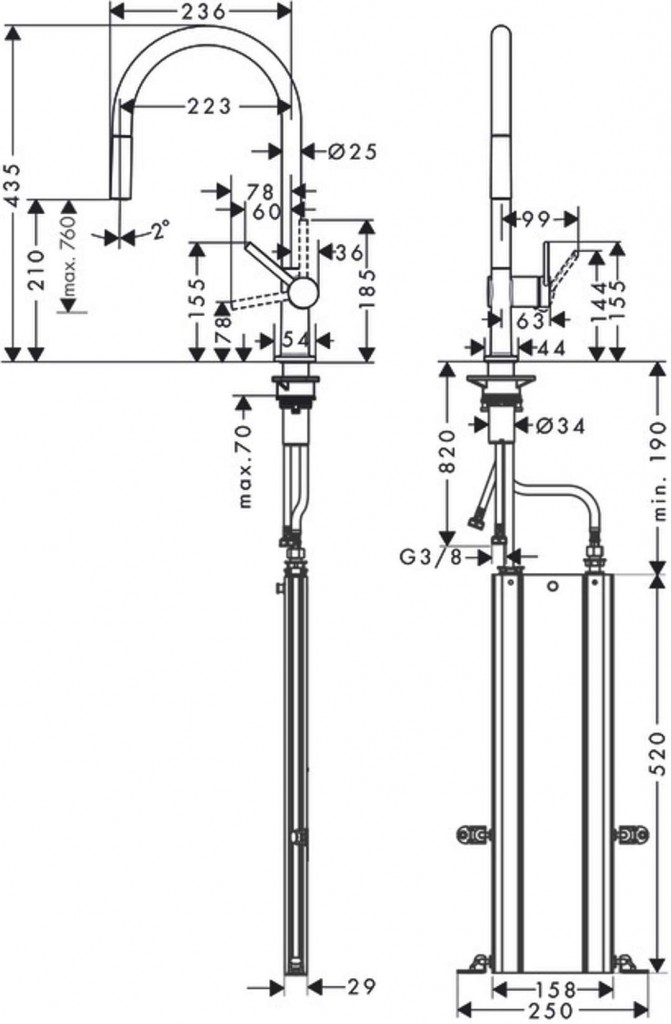- hadice sa vyťahuje až 76 cm a zaručuje príjemnú prácu a voľnosť pohybu v okolí drezu