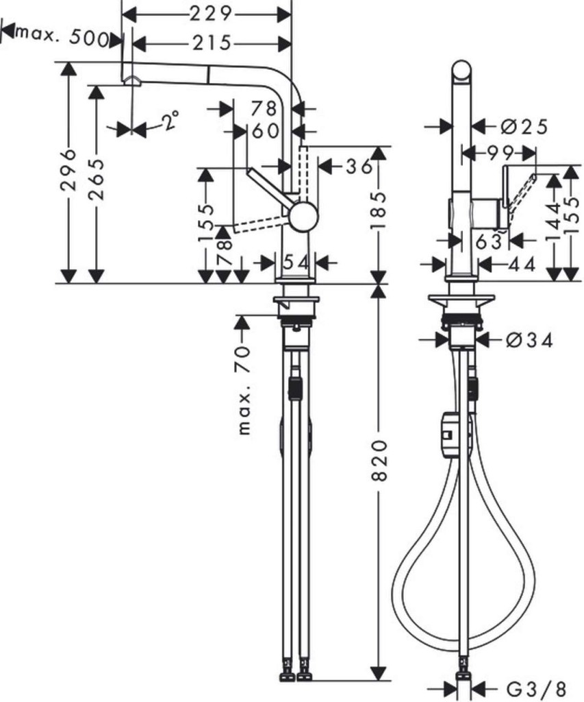 - spôsob montáže: prívodnej hadice G 3/8