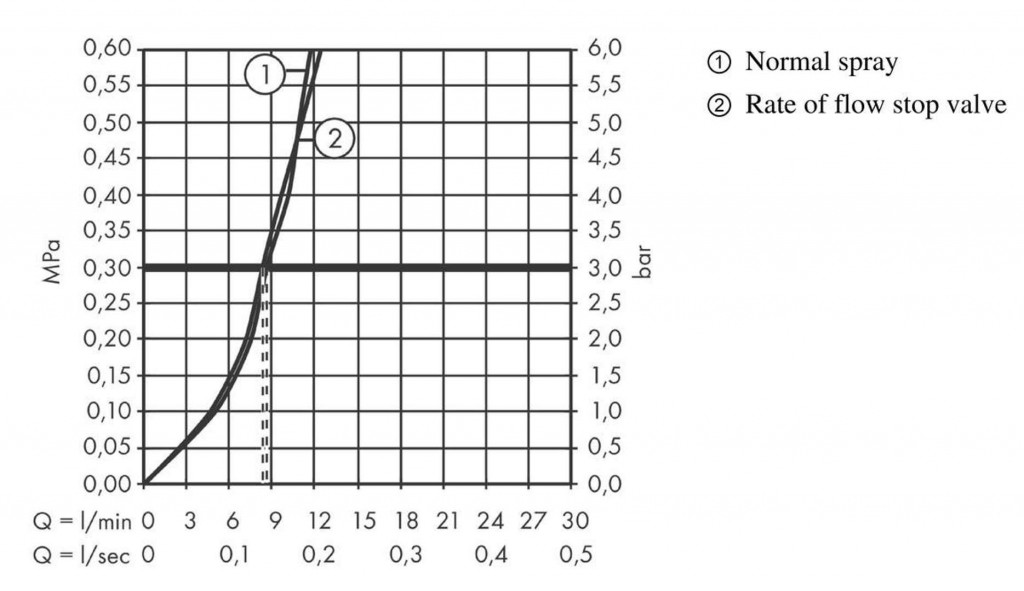 - maximálny prietok: 8 l / min (tlak 3 bar)