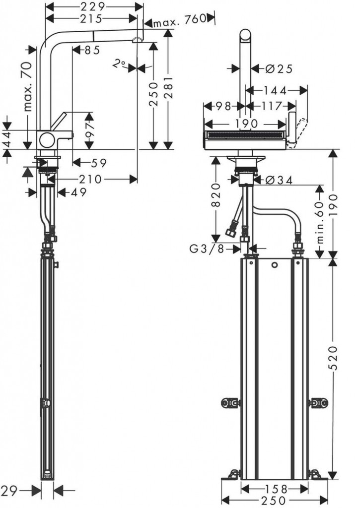 - hadice sa vyťahuje až 76 cm a zaručuje príjemnú prácu a voľnosť pohybu v okolí drezu