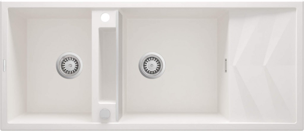 Granitový 2-miskový drez séria Magnetic , je moderný drez s magnetickými vlastnosťami, ktoré sú pre užívateľov na prvý pohľad neviditeľné. Drezy z originálnej kolekcie Magnetic sú vybavené magnetmi , vďaka ktorým je možné na bok misy umiestniť oceľový kryt. Elegantný kryt oddeľuje misu od bočnej police a vytvára ďalší priestor, ktorý zvyšuje funkčnosť drezu a umožňuje ho voliteľne vybaviť vyhradeným príslušenstvom z kolekcie - hygienickými držiakmi na utierku a kuchynskú drôtenku alebo praktickými košíkmi s odkvapkávačom. Drez zapustený do dosky má priestrannú misu a krátky odkvapkávač zaujme ozdobným motívom rybej kosti, ktorý urýchľuje odtok vody.